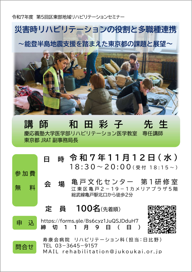 問い合わせ:寿康会病院 リハビリテーション科 日比野 rehabilitation@jukoukai.or.jp