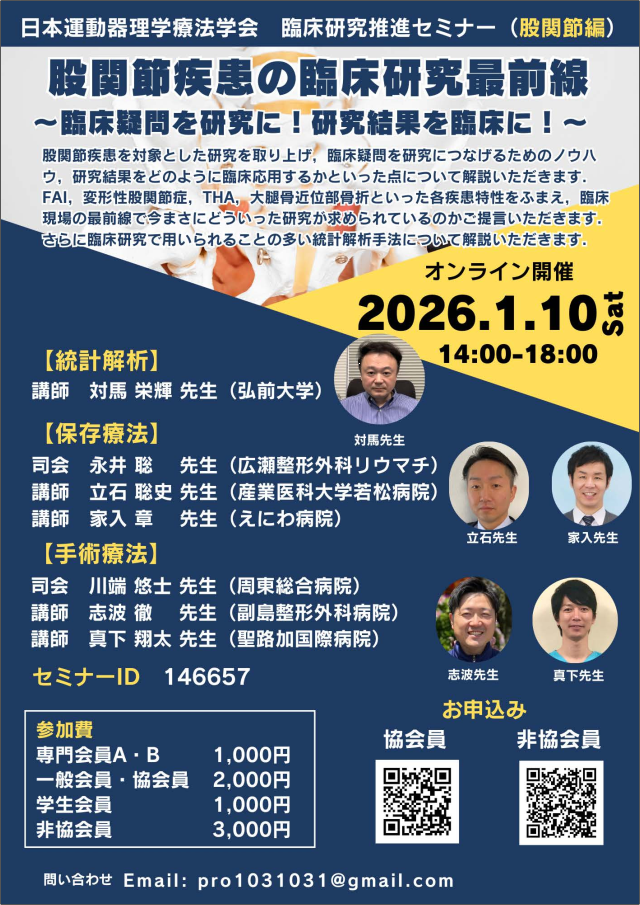 日本運動器理学療法学会 臨床研究推進セミナー 股関節編 開催のお知らせ