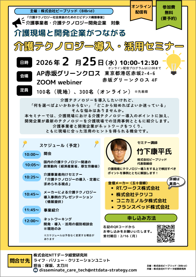 担当:大塚、保坂、太刀川 disseminate_care_tech@nttdata-strategy.com
