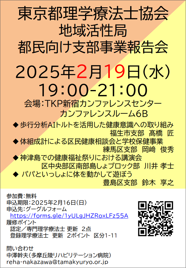 東京都理学療法士協会 地域活性局 都民向け支部事業報告会のお知らせ